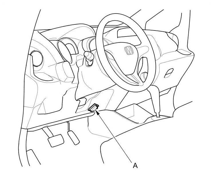 6. Remove the dipstick, and refill the transmission with the recommended fluid into the dipstick guide opening (A). Always use Honda ATF DW-1 Automatic Transmission Fluid (ATF). Using a non-Honda ATF can affect shift quality.