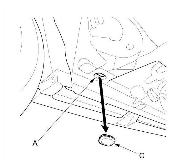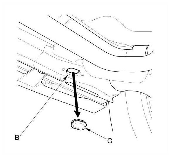 NOTE: The tie down hook slots have rubber plugs (C) over the openings.