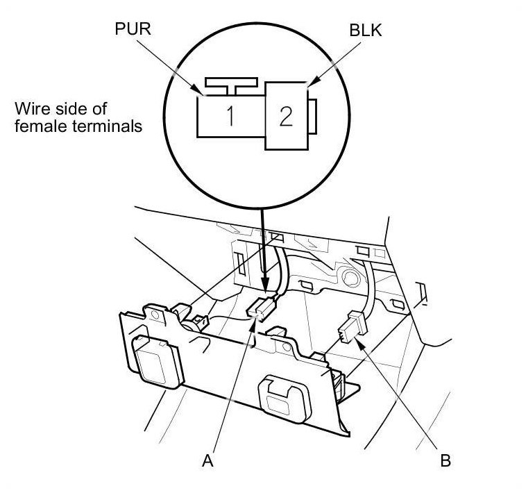 2. Disconnect the 2P connector (A) and the AUX connector (B) (if equipped).