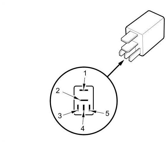 - There should be continuity between terminals No. 1 and No. 2 when battery power is connected to terminal No. 5, and body ground is connected to terminal No. 3.