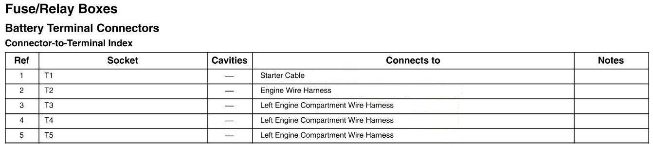 Battery Terminal Connectors - Connector-to-Terminal Index