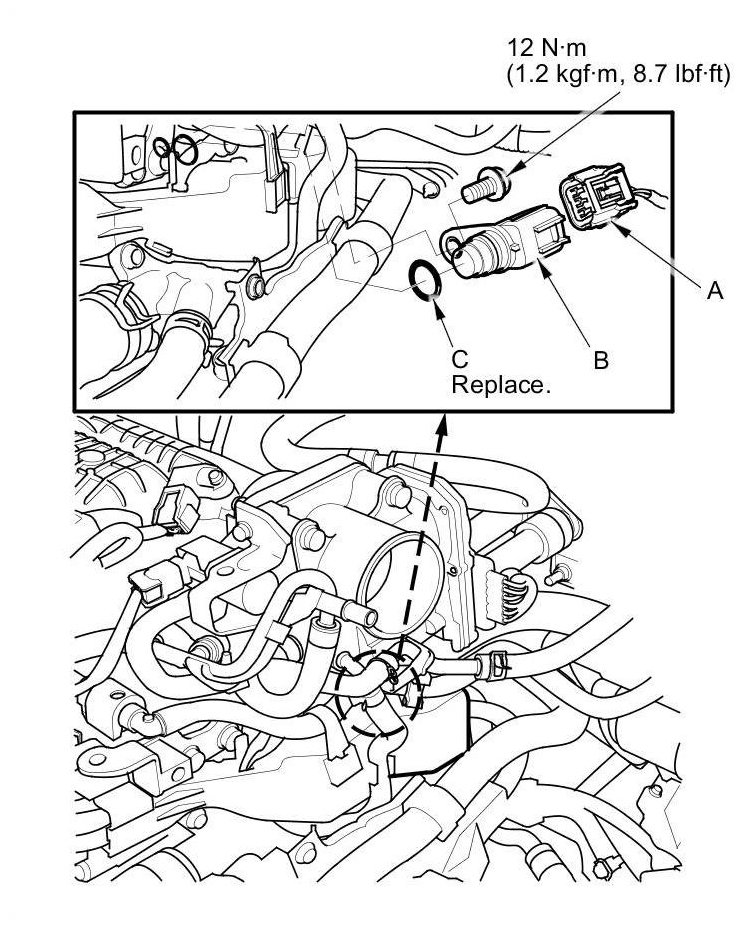 5. Install the parts in the reverse order of removal with a new O-ring (C).