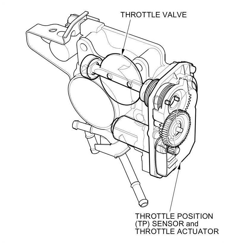 The throttle is electronically controlled by the electronic throttle control system (ETCS). Refer to the system diagram to see a functional layout of the system.