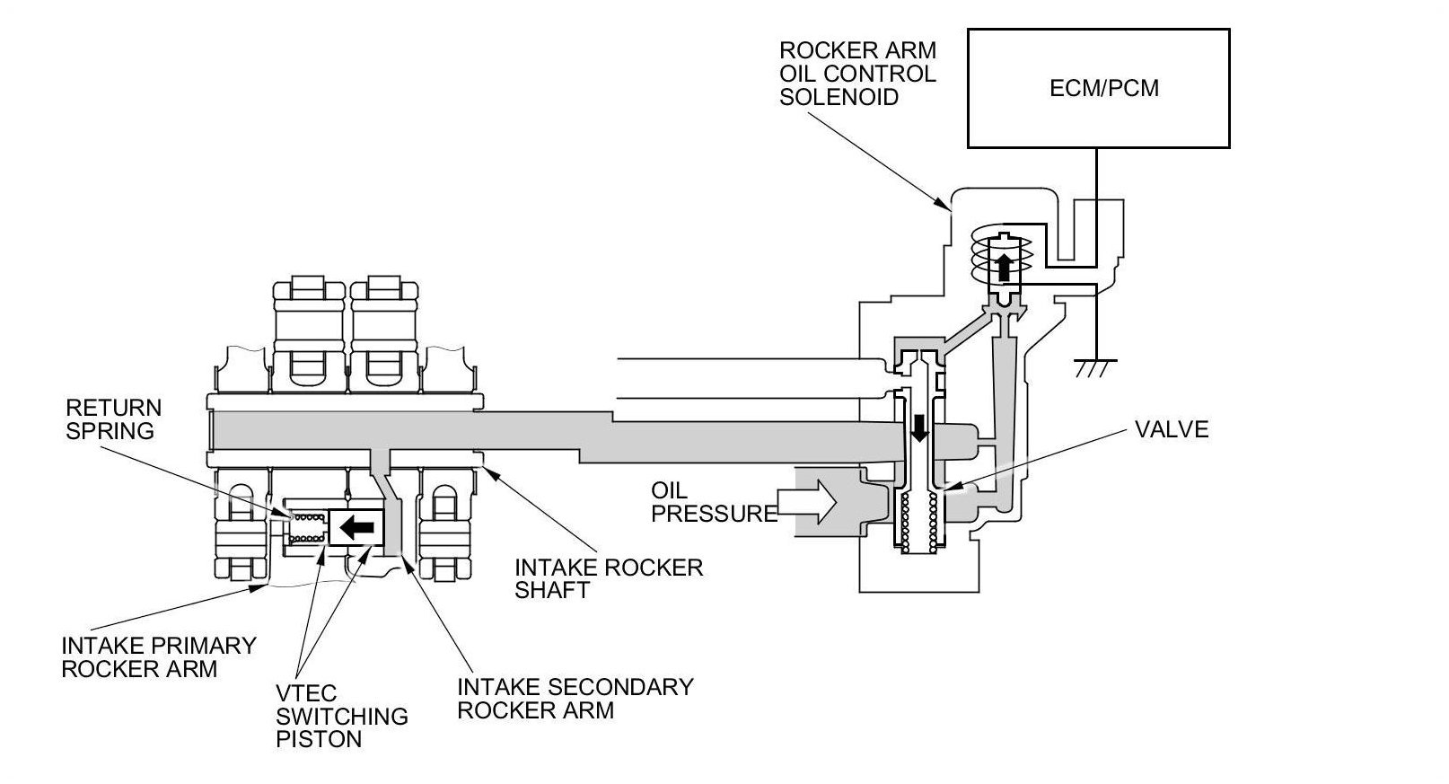 - The rocker arm oil control solenoid switches both intake rocker arms of the VTEC system on and off; the solenoid is controlled by the ECM/PCM.