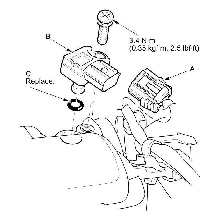 Install the parts in the reverse order of removal with a new O-ring (C).