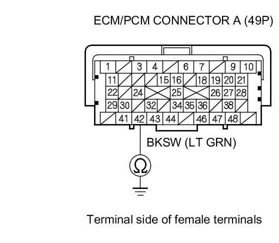 8. Check for continuity between ECM/PCM connector terminal A42 and body ground.