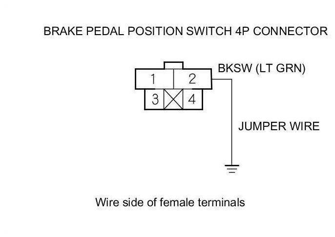 9. Connect brake pedal position switch 4P connector terminal No. 2 to body ground with a jumper wire.