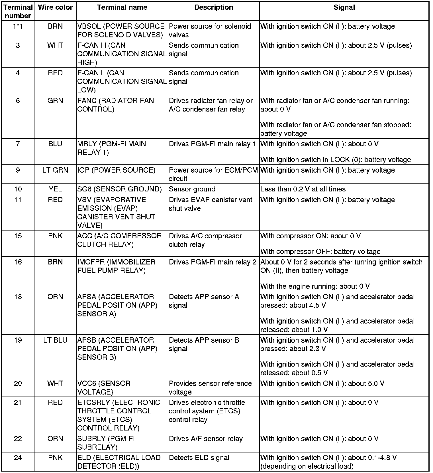 ECM/PCM Inputs and Outputs at ECM/PCM Connector A (square) (49P)