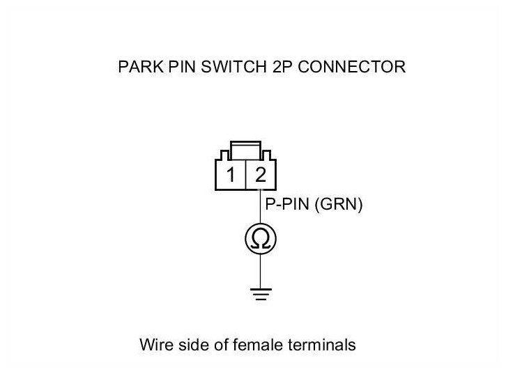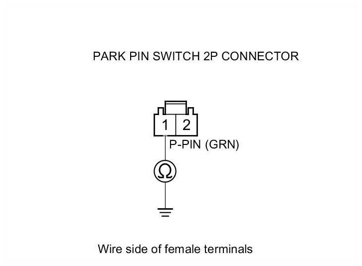 17. Check for continuity between park pin switch 2P connector terminal No. 1 and body ground.