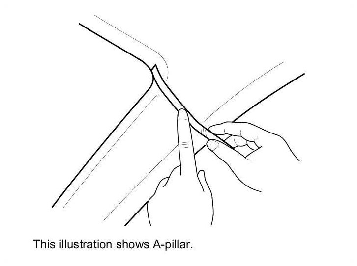 2. Apply masking tape to the headliner to mark the upper edge of each pillar trim.
