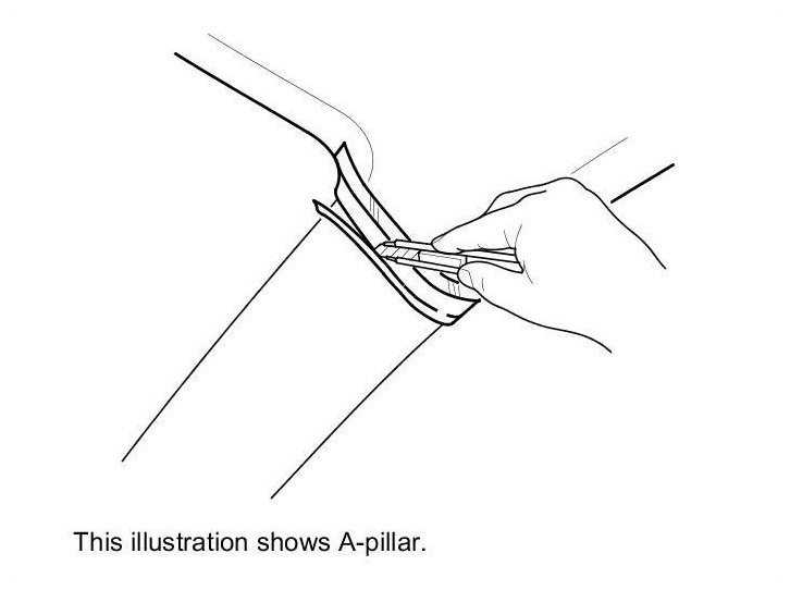 4. Carefully trim the headliner with a utility knife, reducing the overlap to less than 8 mm (0.3 in).