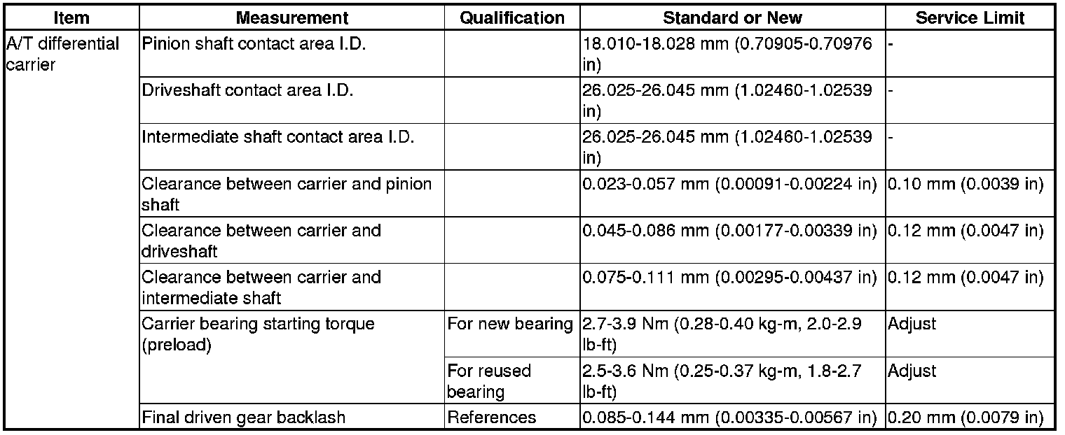 A/T Differential Carrier Specification(s) (A/T)