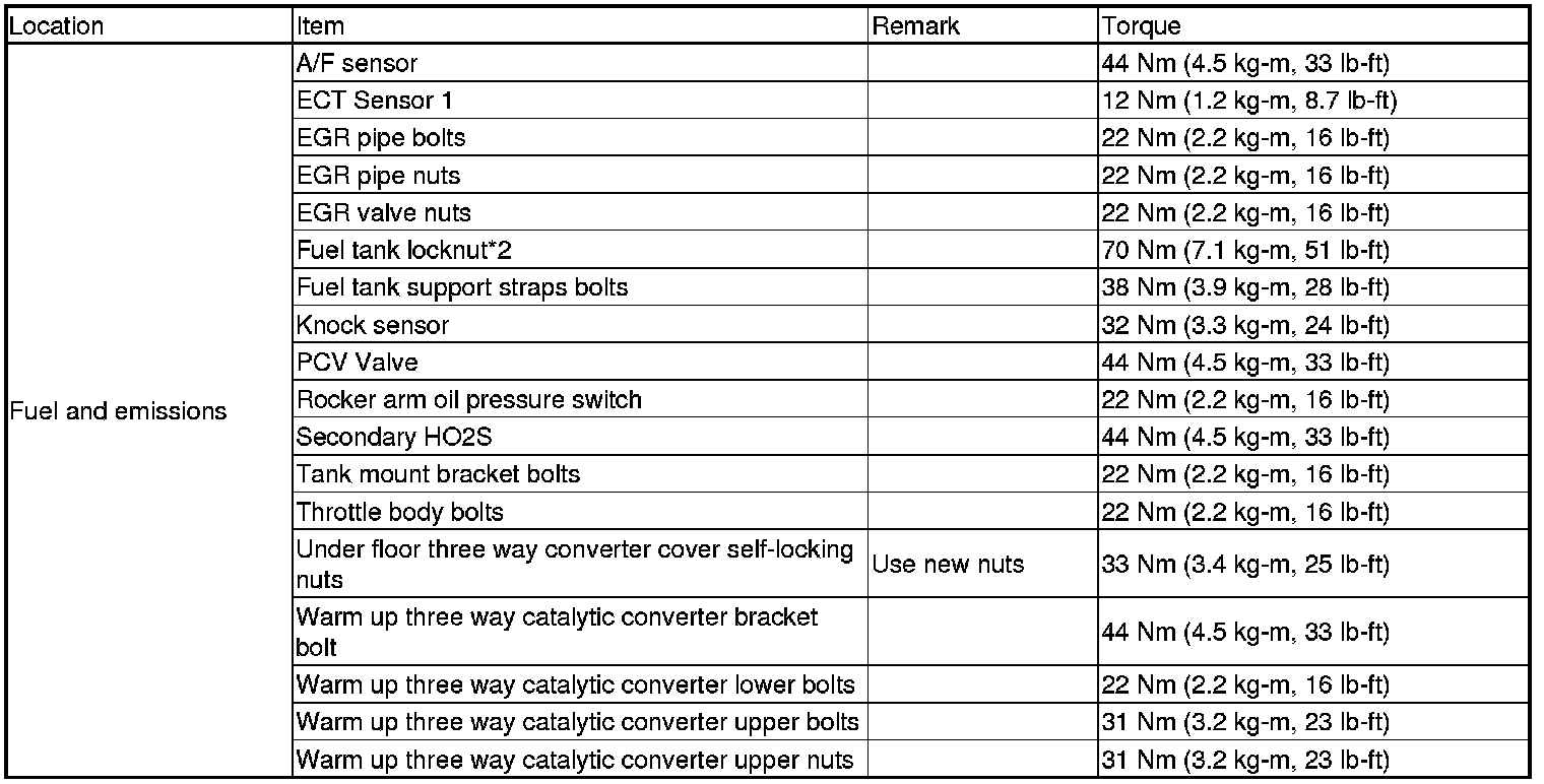 Torque Specifications