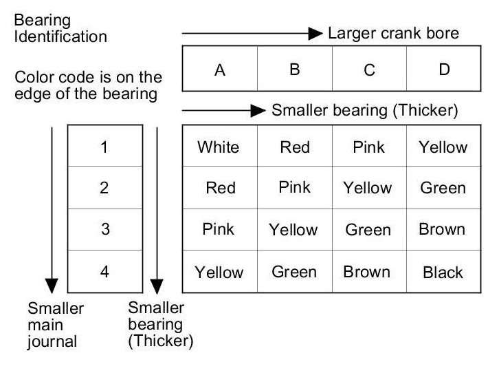 Use them, and the numbers stamped on the crankshaft (codes for main journal size), to choose the correct main bearings. If the codes are indecipherable because of an accumulation of dirt and dust, do not scrub them with a wire brush or scraper. Clean them only with solvent or detergent.