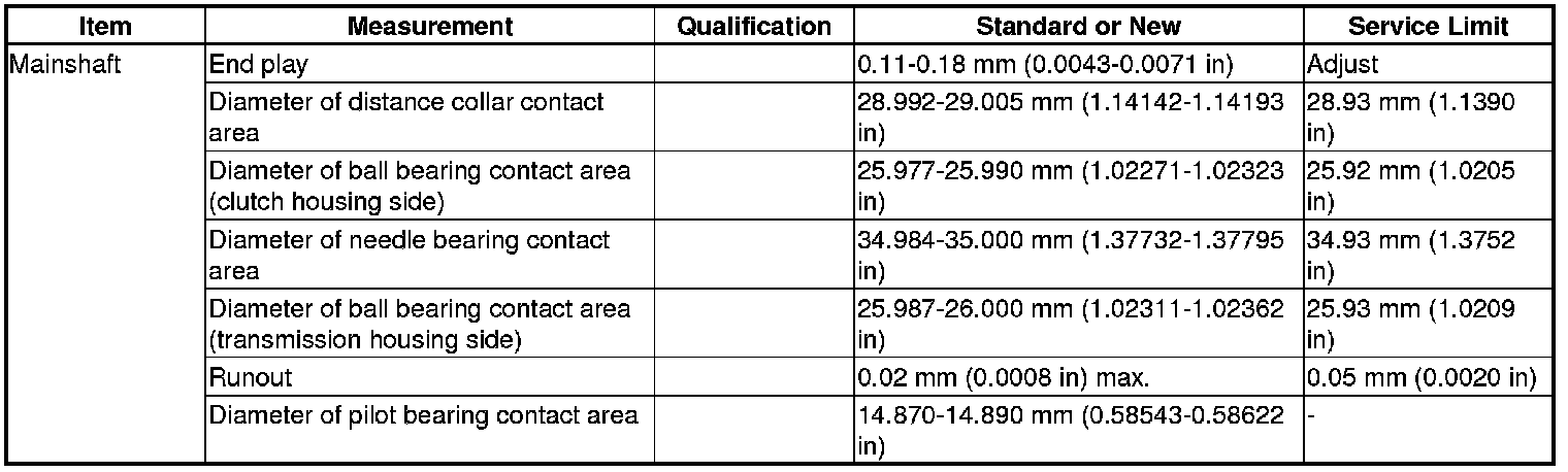 Mainshaft Specification(s) (M/T)