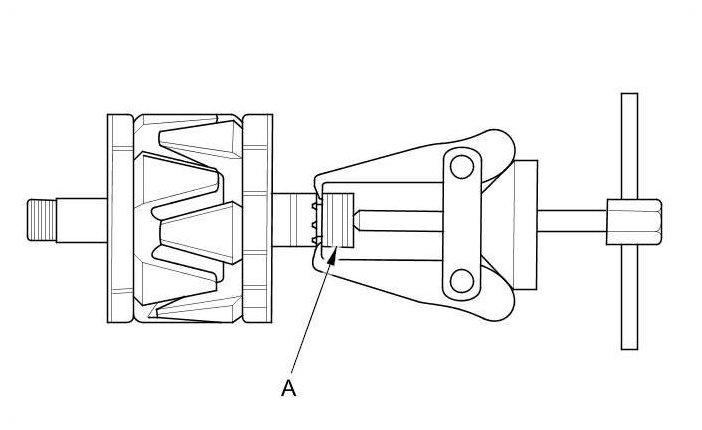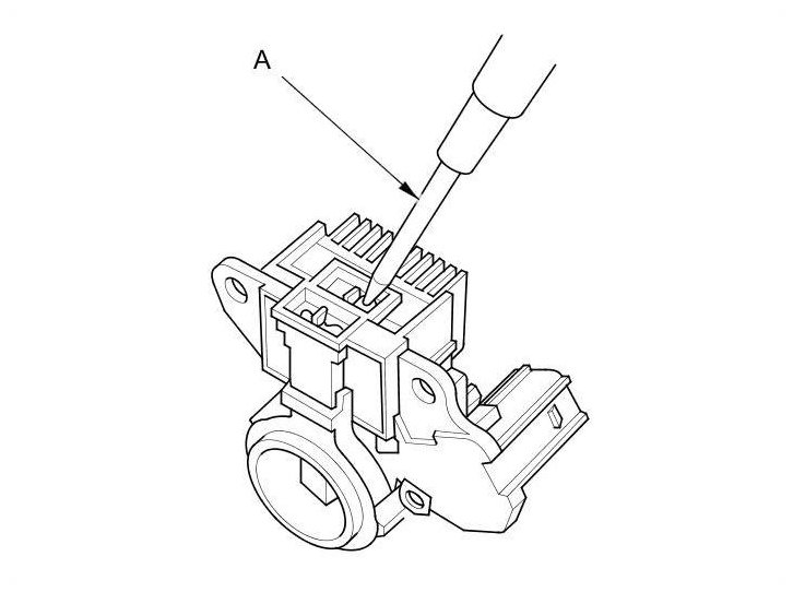 20. Unsolder the brush leads from the voltage regulator/brush holder assembly with a 100 W soldering iron (A), then replace the brushes.