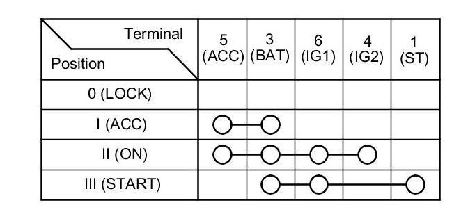 5. If the continuity is not as specified, replace the ignition switch Service and Repair.