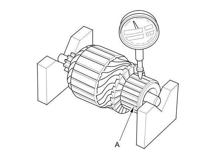 - If the commutator runout is not within the service limit, replace the armature.