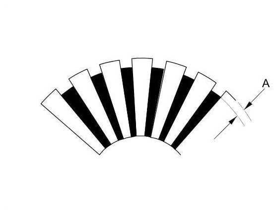 6. Use a digital caliper or dial type caliper to check the mica depth (A). If the mica depth is below the service limit, replace the armature.