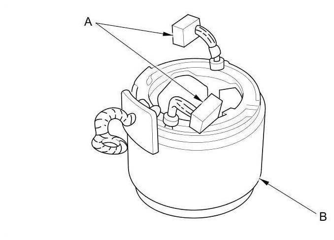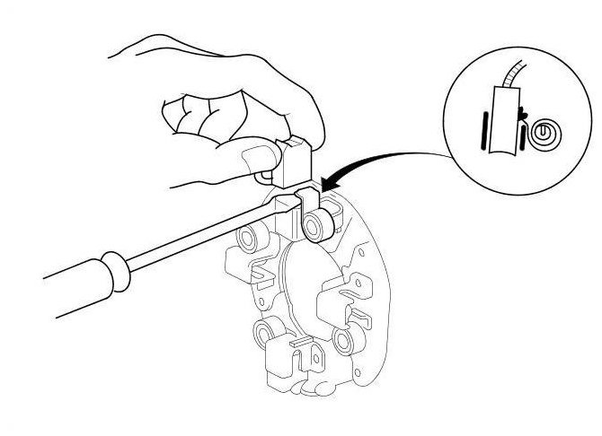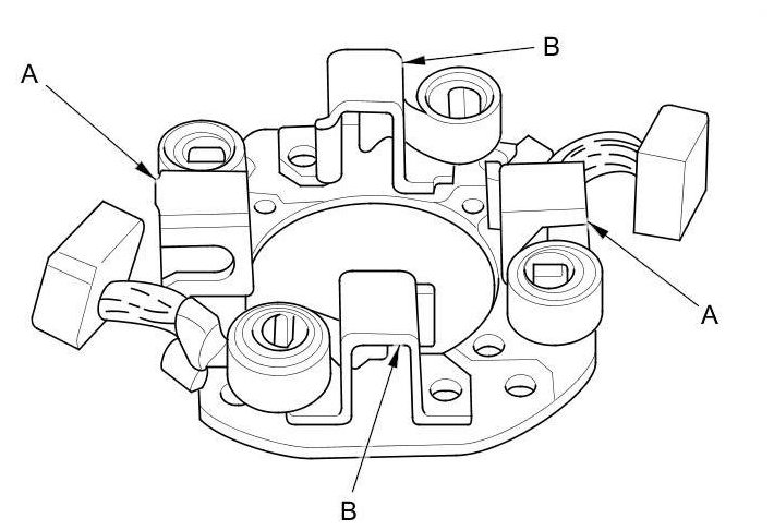 13. Check for continuity between the (+) brush holders (A) and the (-) brush holders (B). If there is continuity, replace the brush holder assembly.
