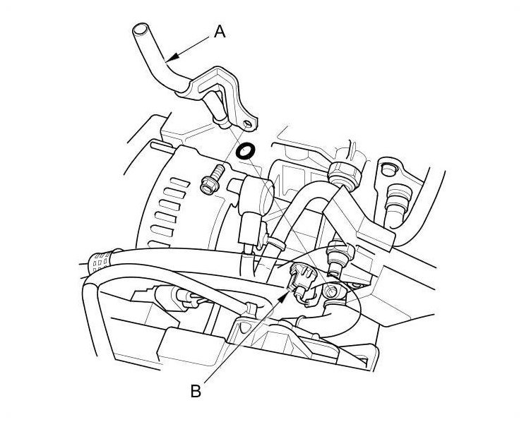 5. Disconnect the oil pressure switch connector (B).