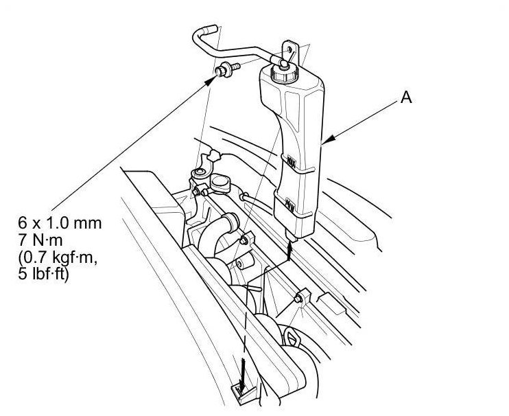 5. Install the coolant reservoir (A).