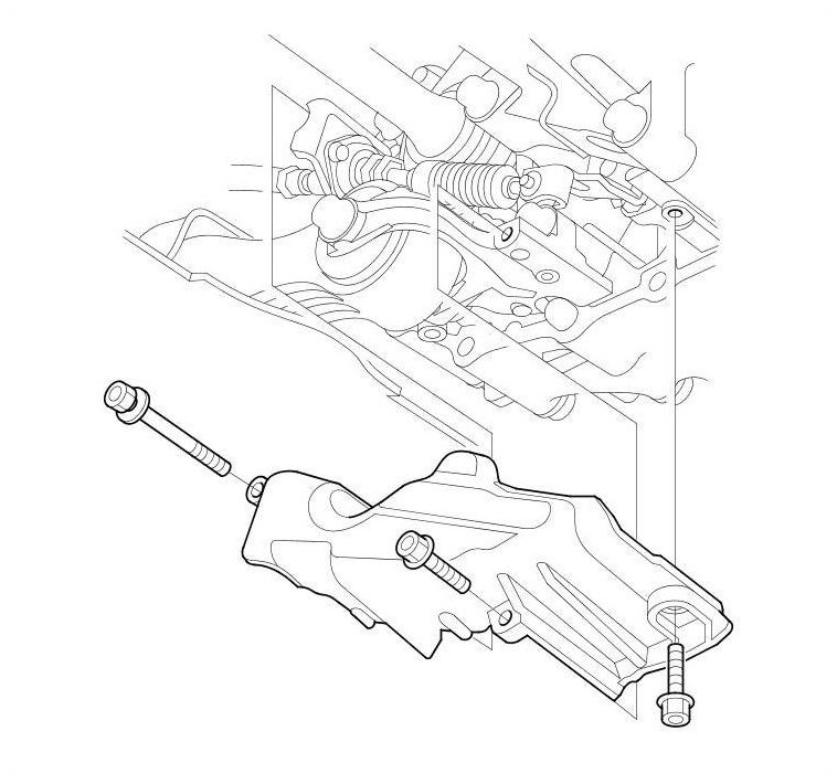9. Remove the bolts securing the shift cable holder (D), and separate the shift cable (E) from the selector control shaft end.