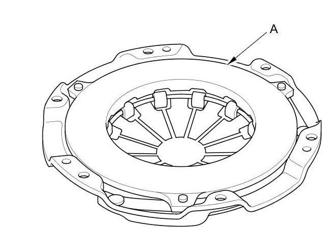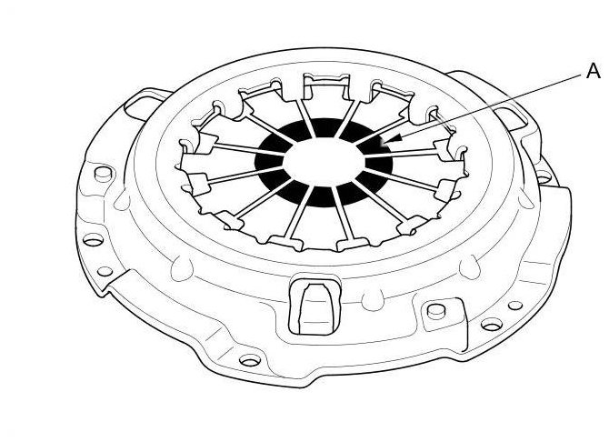 5. Inspect the fingers of the diaphragm spring (A) for wear at the release bearing contact area.