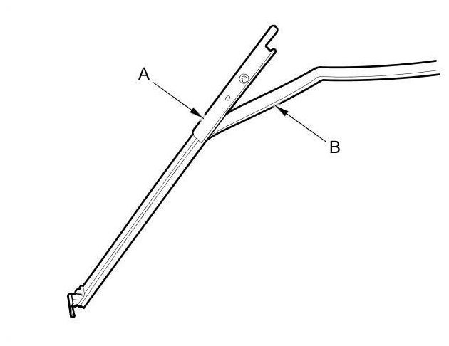 7. Remove the rear lower channel (A) from the glass run channel (B).