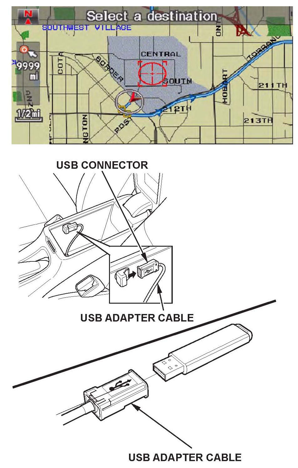 4. Make sure you are on a map screen, then connect the USB device to the USB cable that is in the center console.