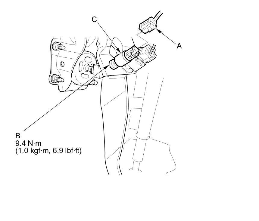 3. Loosen the locknut (B), and remove the idle stop switch (C).