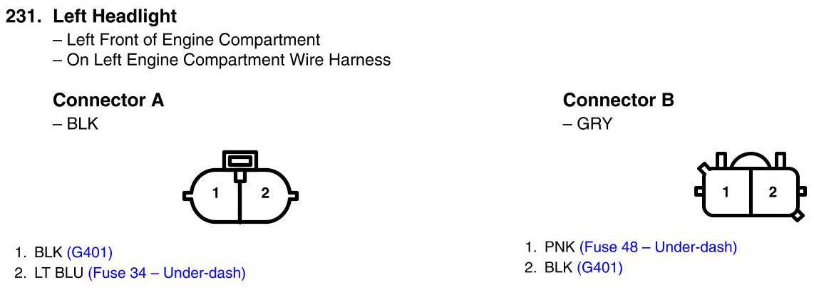View 231 - Left Headlight Connector View