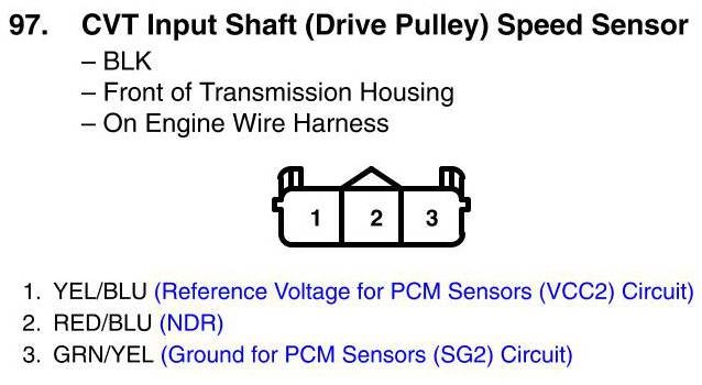 View 97 - CVT Input Shaft (Drive Pulley) Speed Sensor Connector View