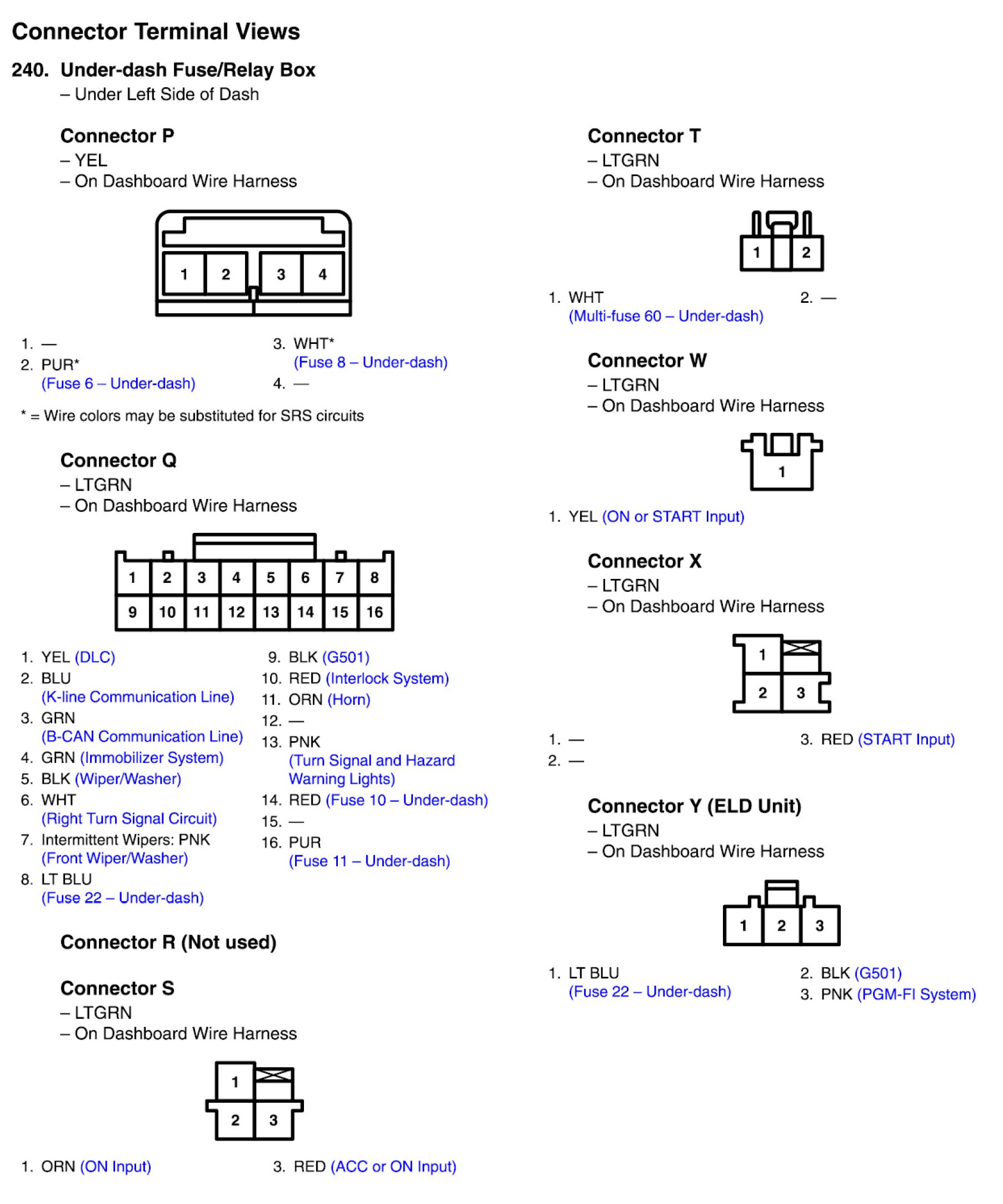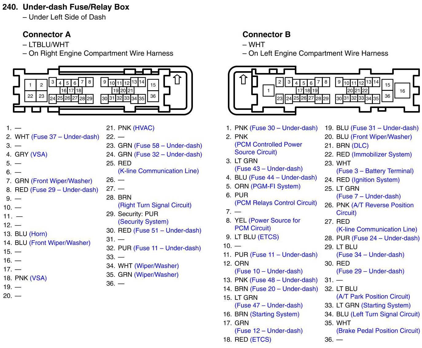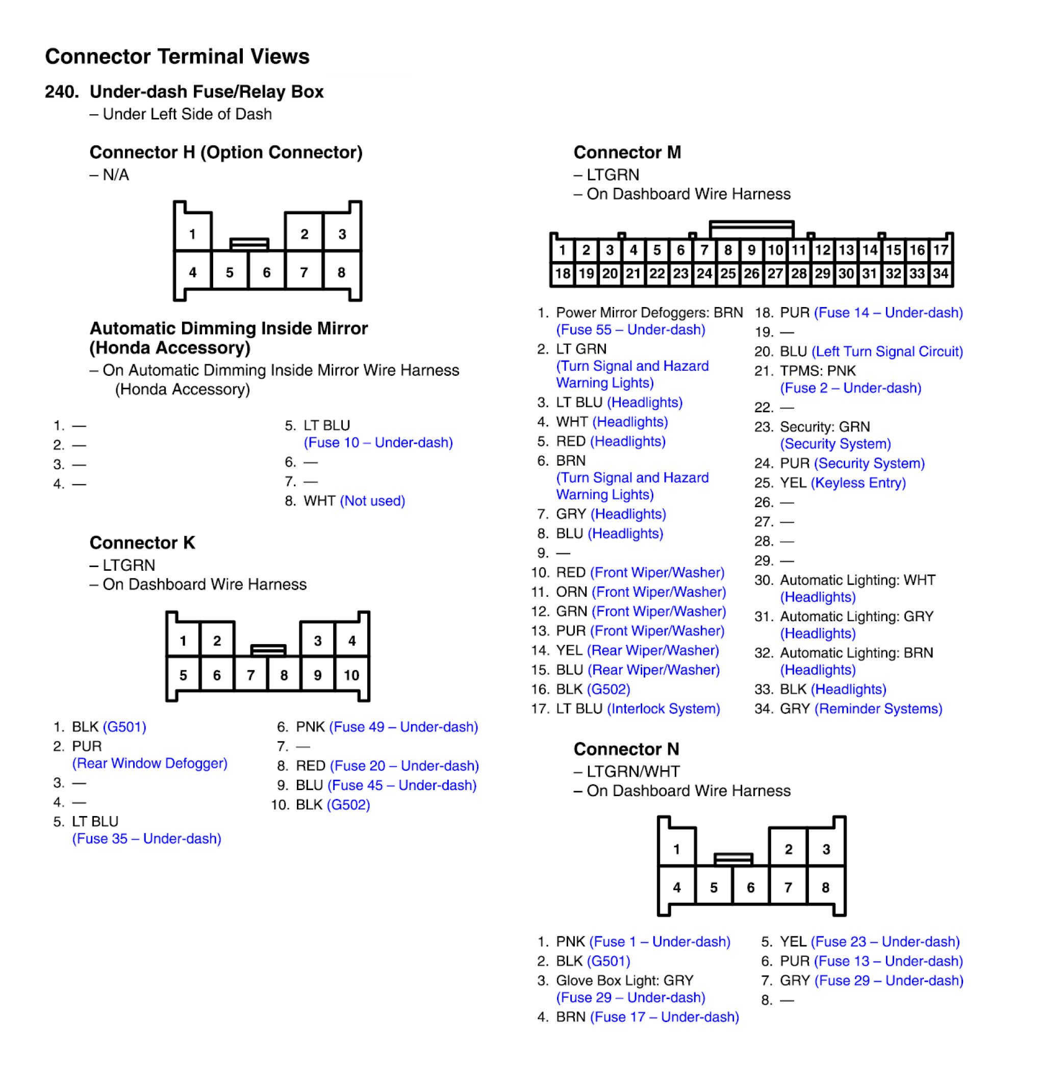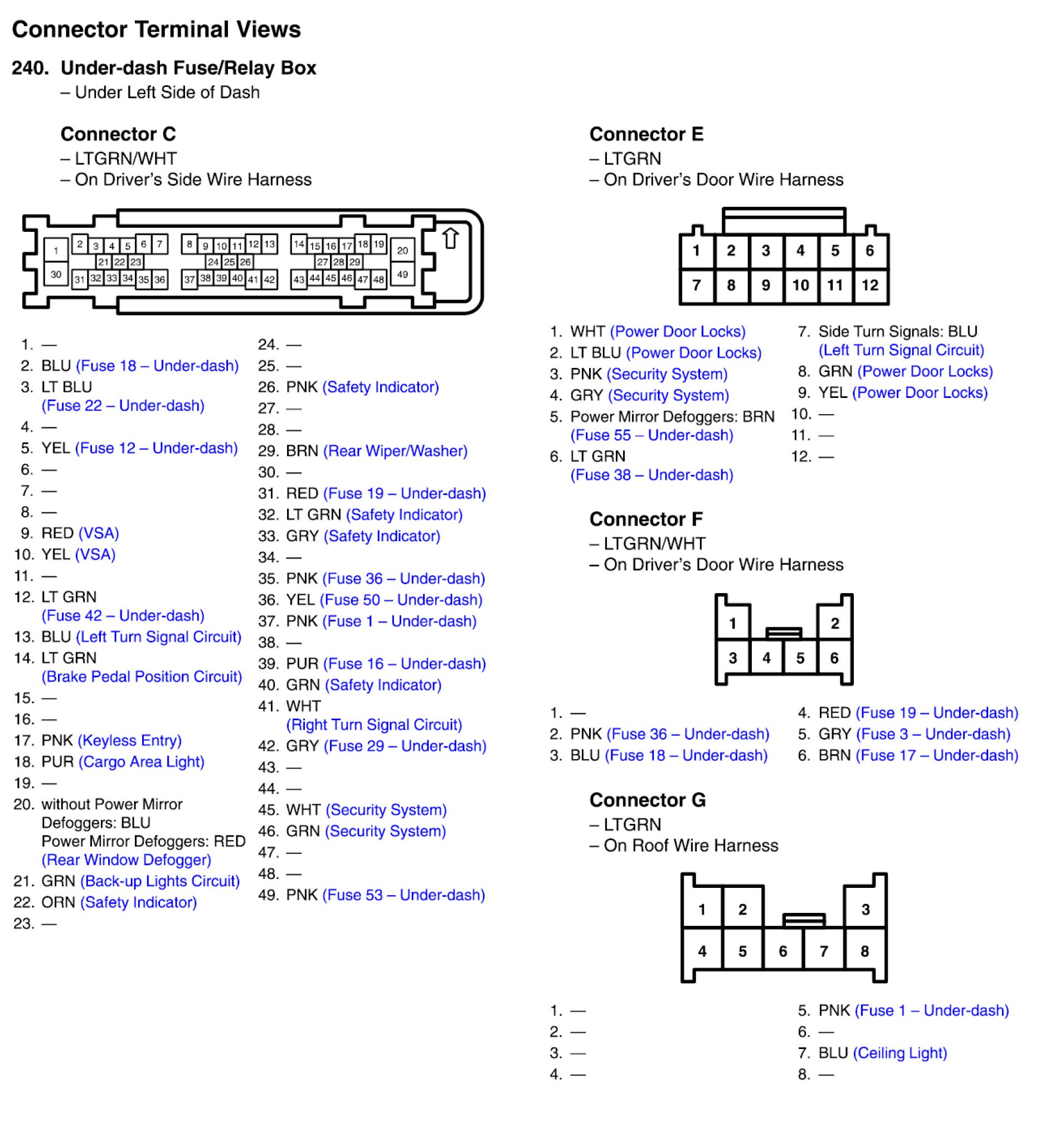Under-dash Fuse/Relay Box Connector View