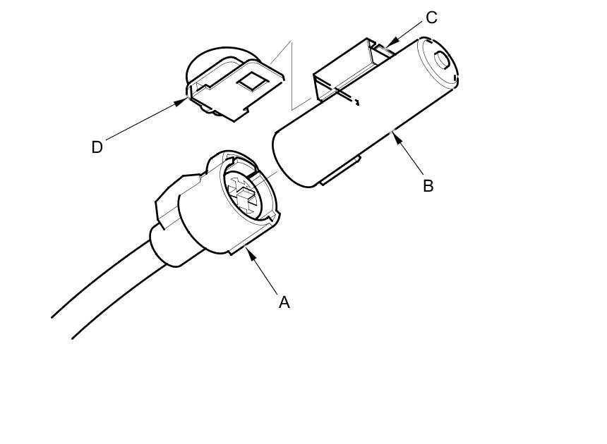 4. Lift the tab (C) to release the lock, then remove the outside air temperature sensor (B) from the clip (D).