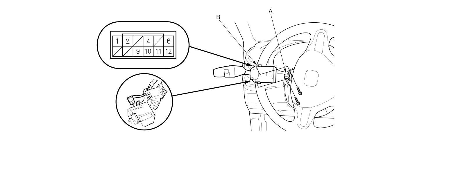 2. Disconnect the 12P connector (A) from the combination light switch (B).