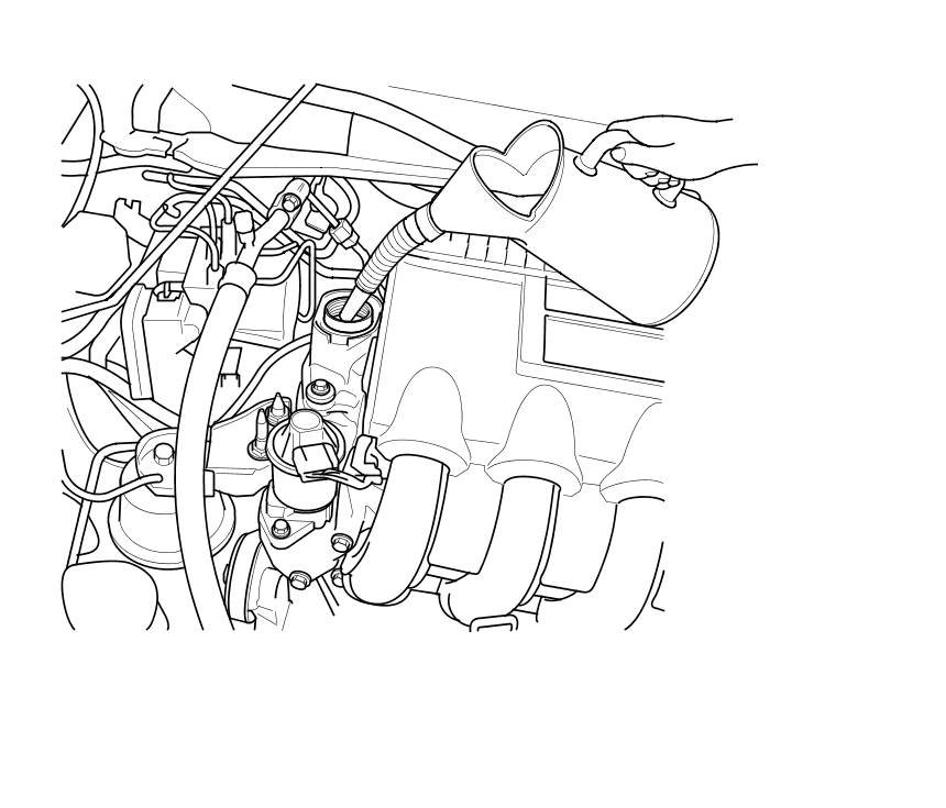 1. Allow the engine to reach operating temperature (fan comes on at least twice).