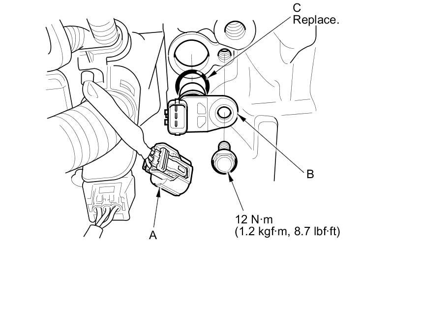 5. Install the sensor in the reverse order of removal with a new O-ring (C).