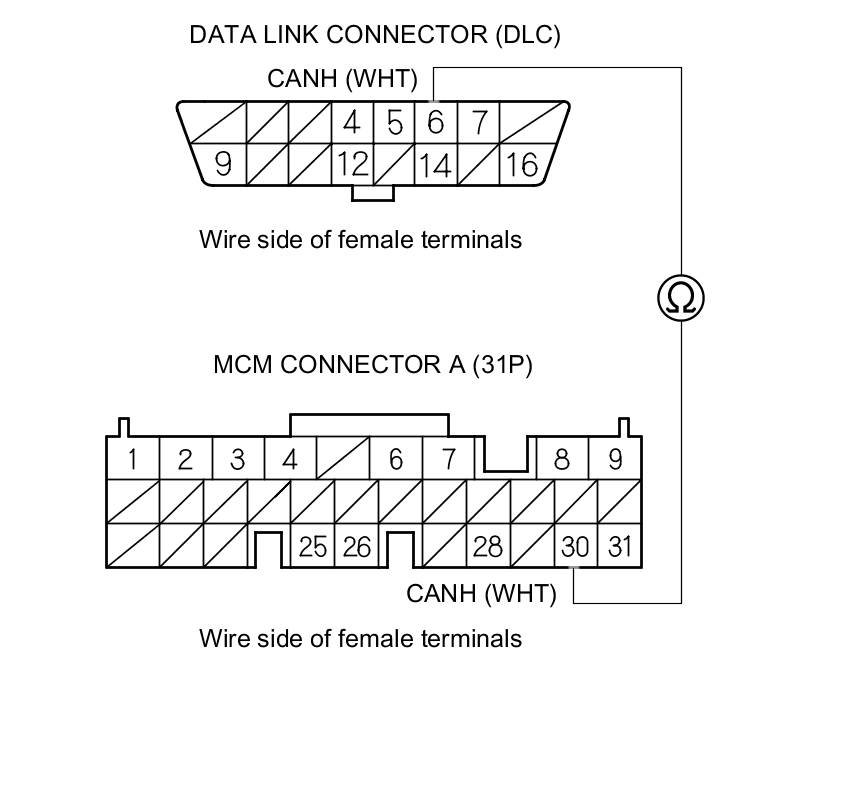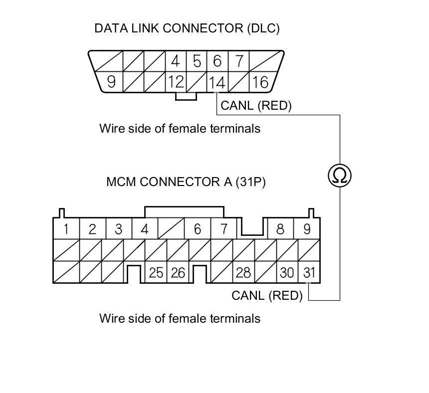 Repair an open in the wire between DLC terminal No. 14 and the MCM (A31).