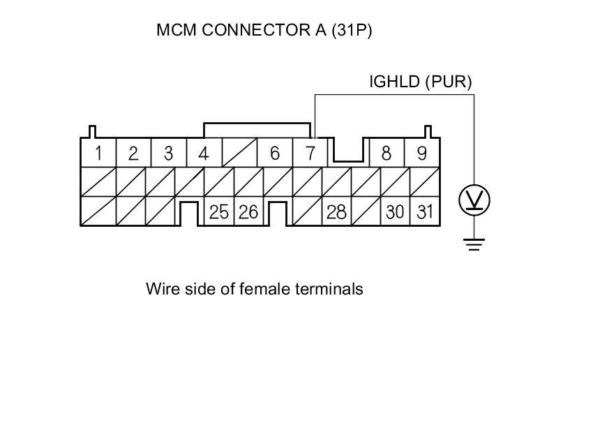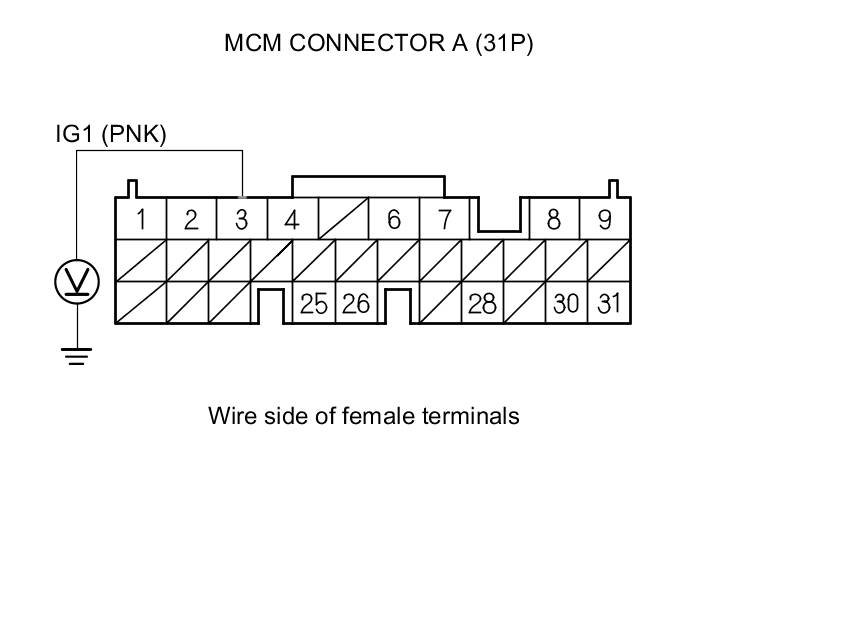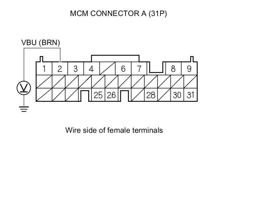 34. Measure the voltage between MCM connector terminal A7 and body ground.