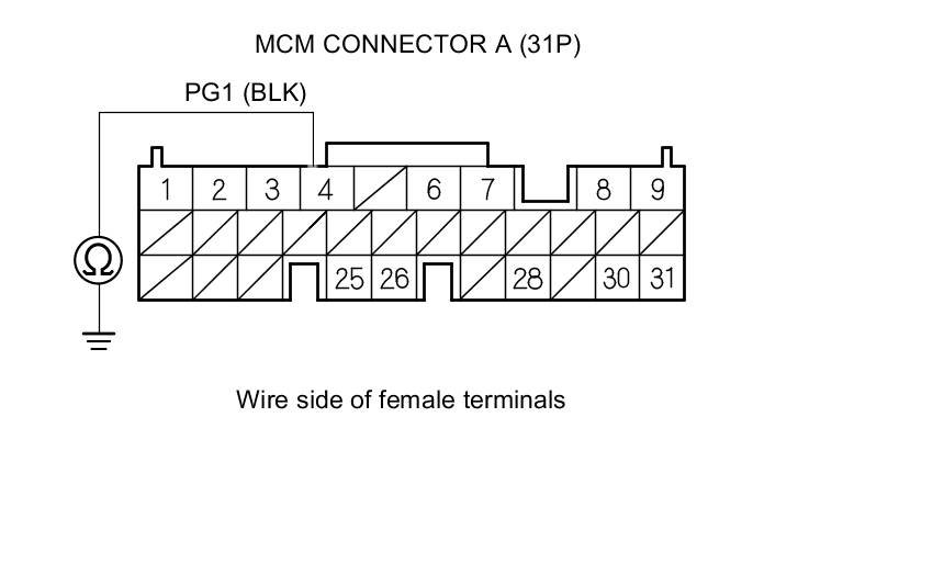 37. Check for continuity between MCM connector terminal A4 and body ground.