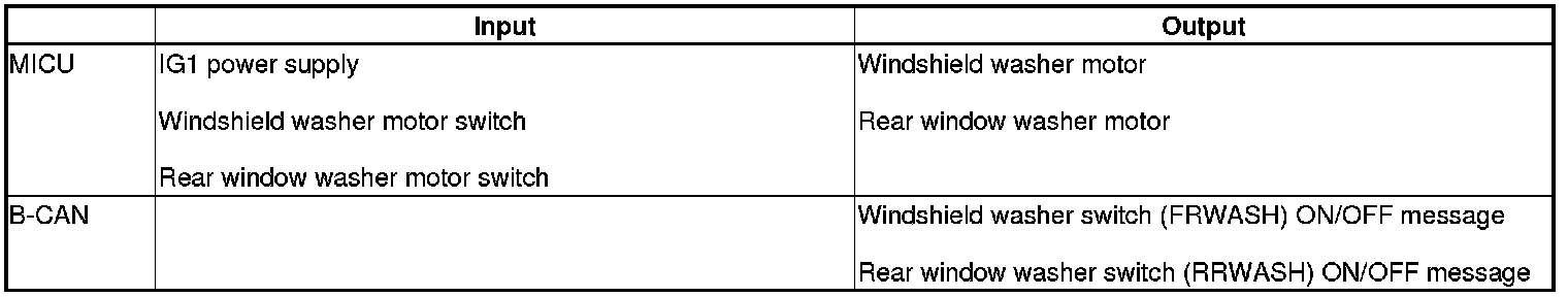 The MICU controls the windshield and rear window washer motor based on inputs from each switch.