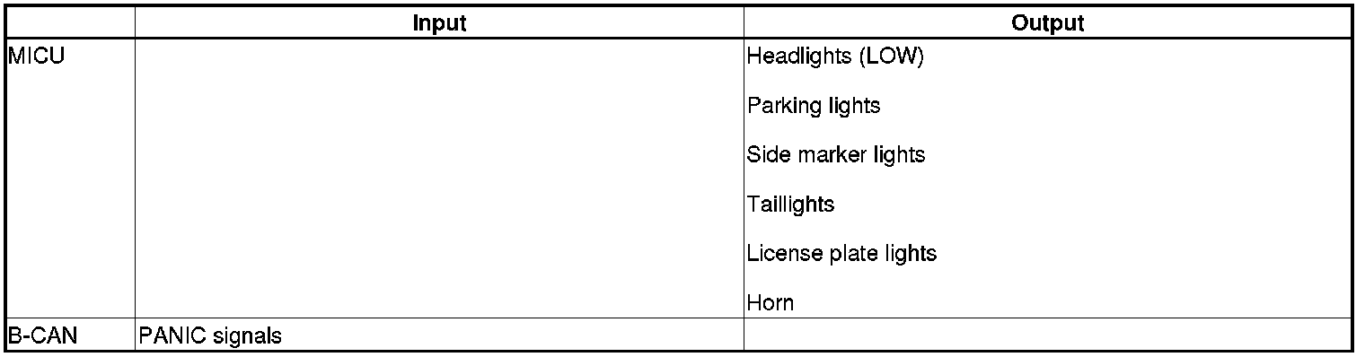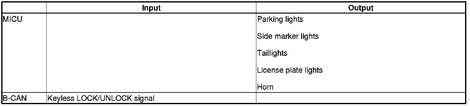 The MICU controls the keyless PANIC operation based on signals sent by B-CAN.