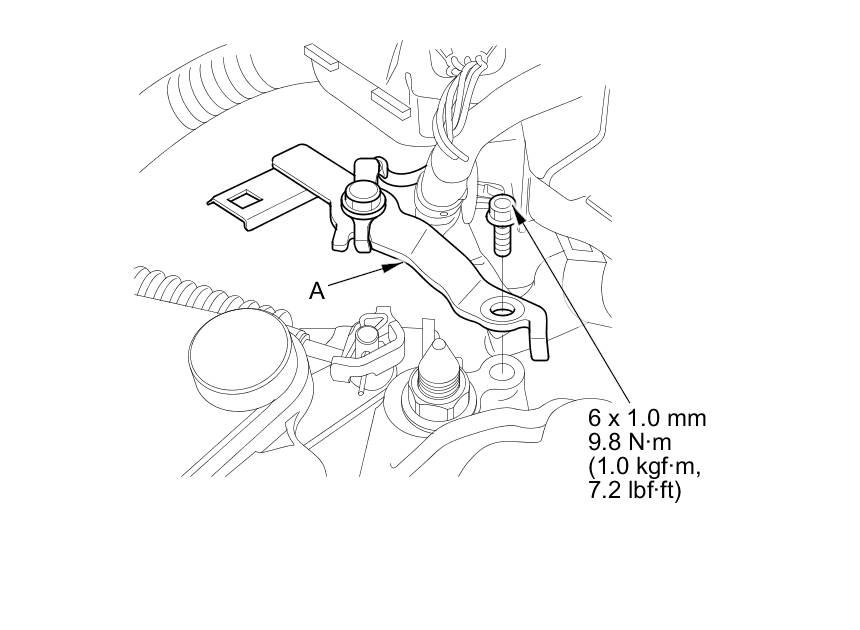 16. Install the ground terminal bracket (A).