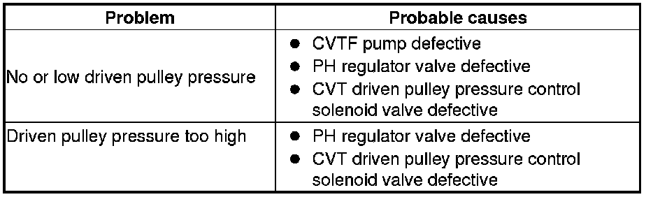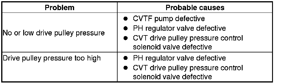 - Drive pulley pressure and driven pulley pressure may be above 3,430 kPa (34.98 kgf/cm2, 497.5 psi) when there is a transmission problem that causes the PCM to go into fail-safe mode.
