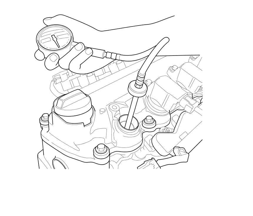 11. Step on the accelerator pedal to open the throttle fully, then crank the engine with the starter motor and measure the compression.