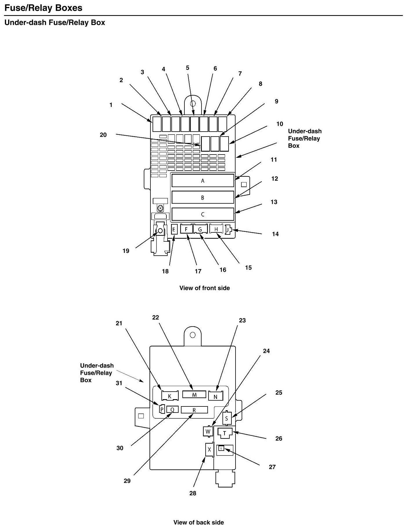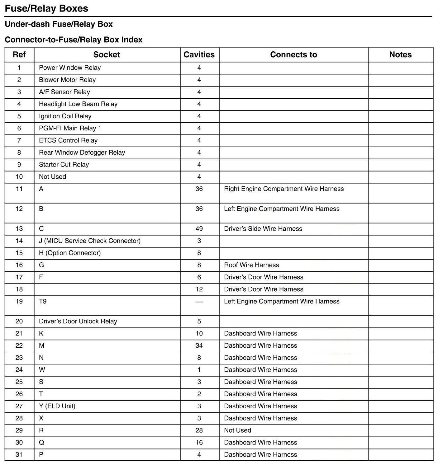 Under-dash Fuse/Relay Box - Connector-to-Fuse/Relay Box Index