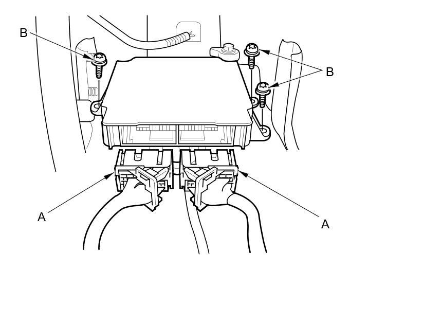 1. Do the 12 volt battery terminal disconnection procedure, then wait at least 3 minutes before starting work.
