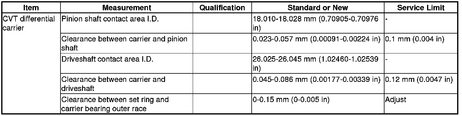 CVT Differential Carrier Specification(s)