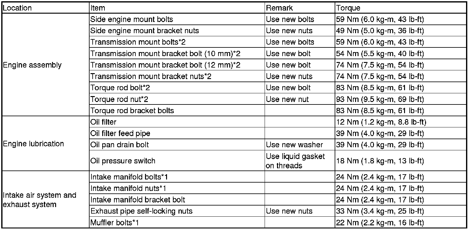 *2: Follow the S/M procedures closely for torque, sequence, and special steps.